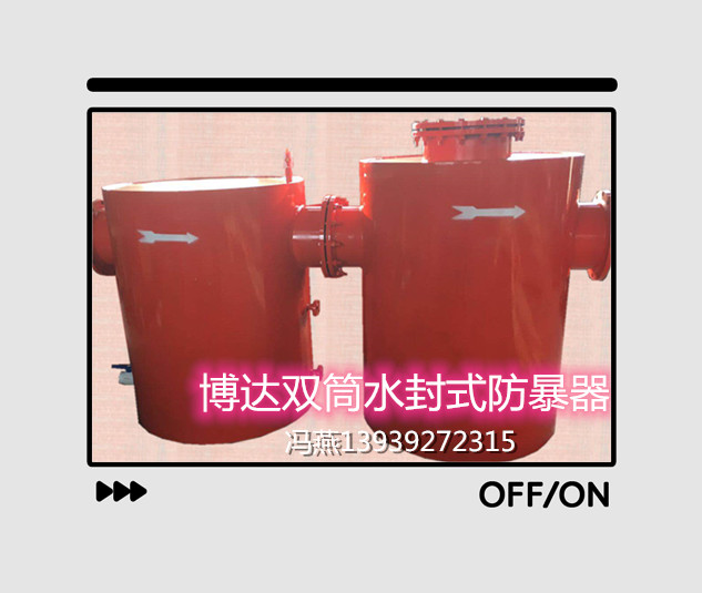 2、水封式防爆器利用圓鐵筒里的水散熱、隔絕或阻礙火陷進(jìn)一步傳播